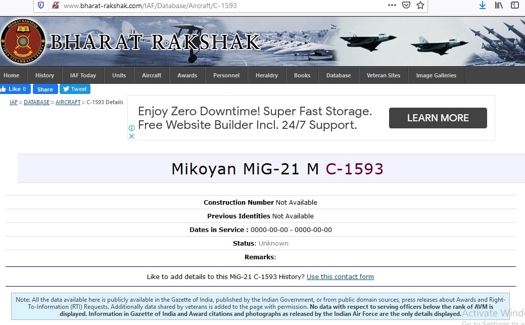 I know Bharat Rakshak is the Best Database for Indian Air Force history, books, events, and gadgets. Therefore, Bharat Rakshak was the Best place to recheck my doubts. Yes I found it. It was Mikoyan MiG-21 M C-1593 procured from the Soviet Union during the 60s.