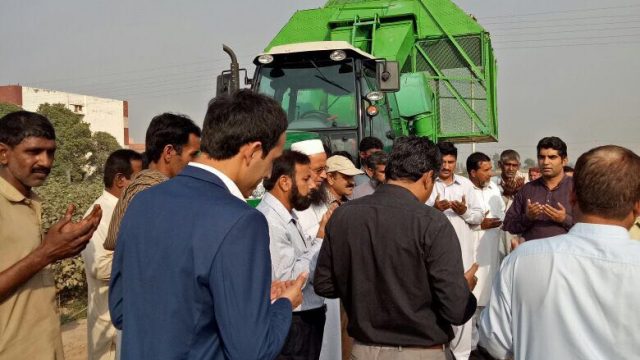 Мултан, Пакистан: впервые в истории Пакистана хлопкоуборочные машины и тракторы (хлопкоуборочные комбайны) из Узбекистана заняты сбором хлопка в Пакистане в Исследовательском институте хлопка «Мултан».